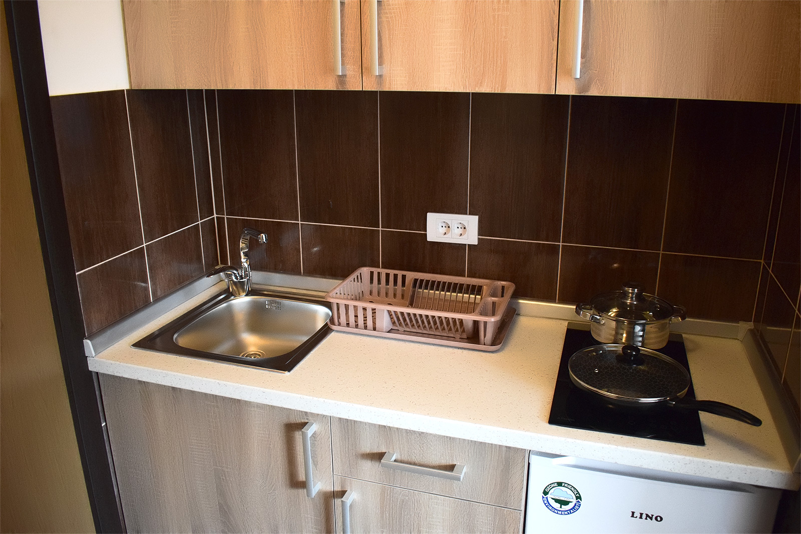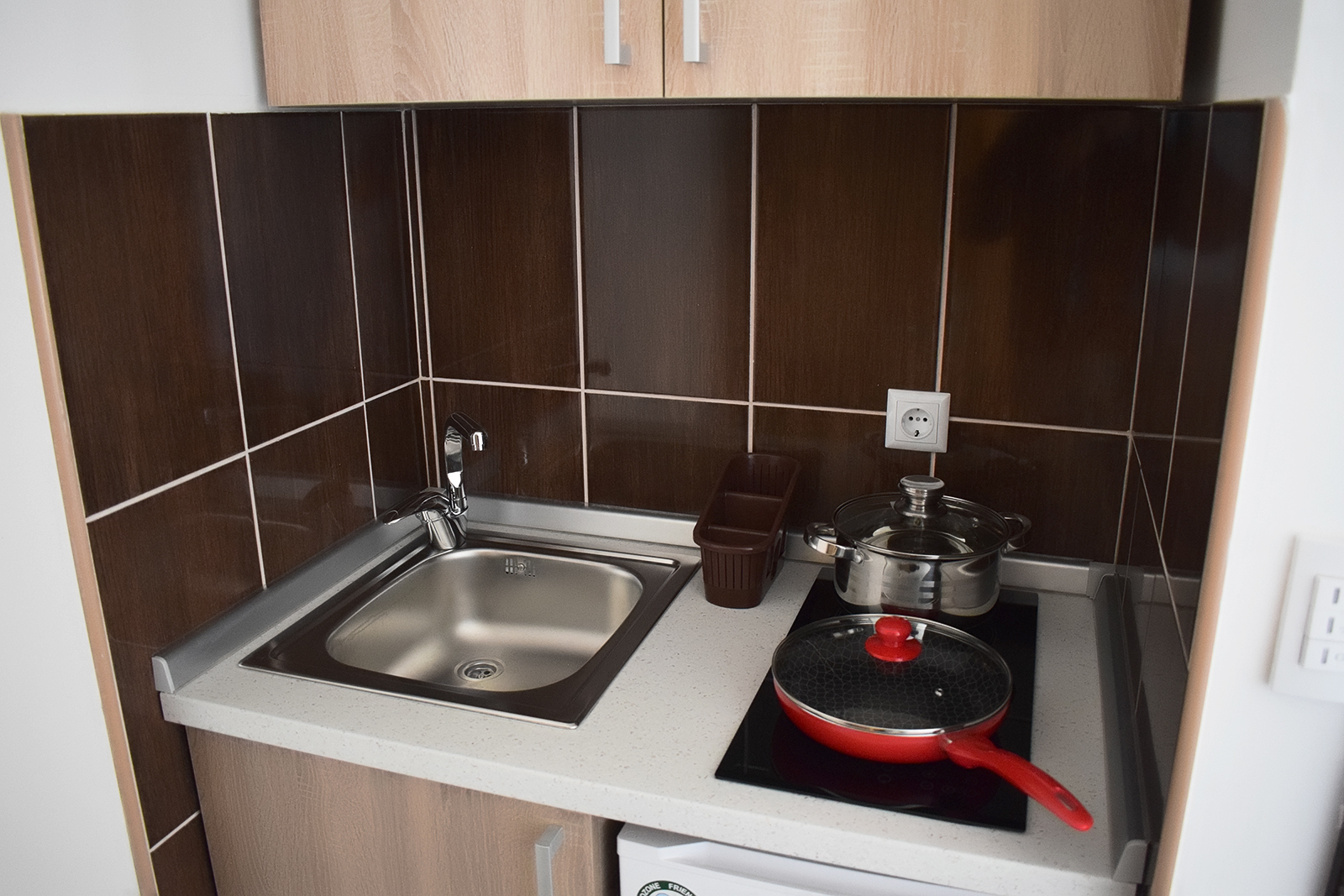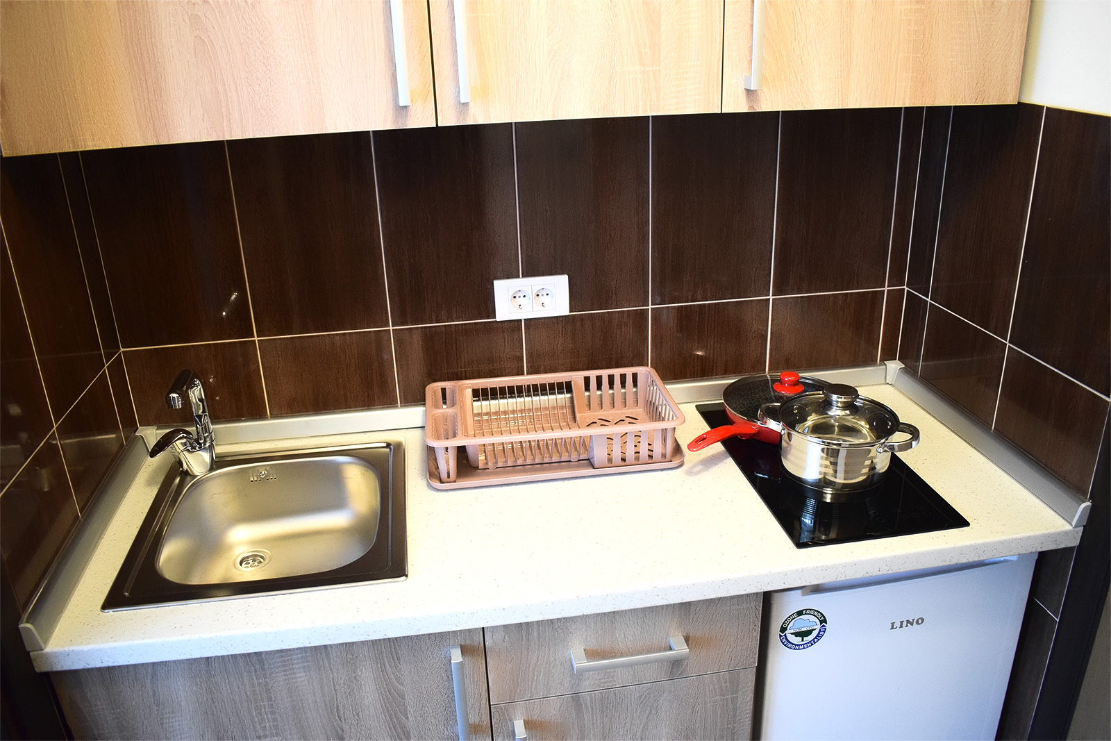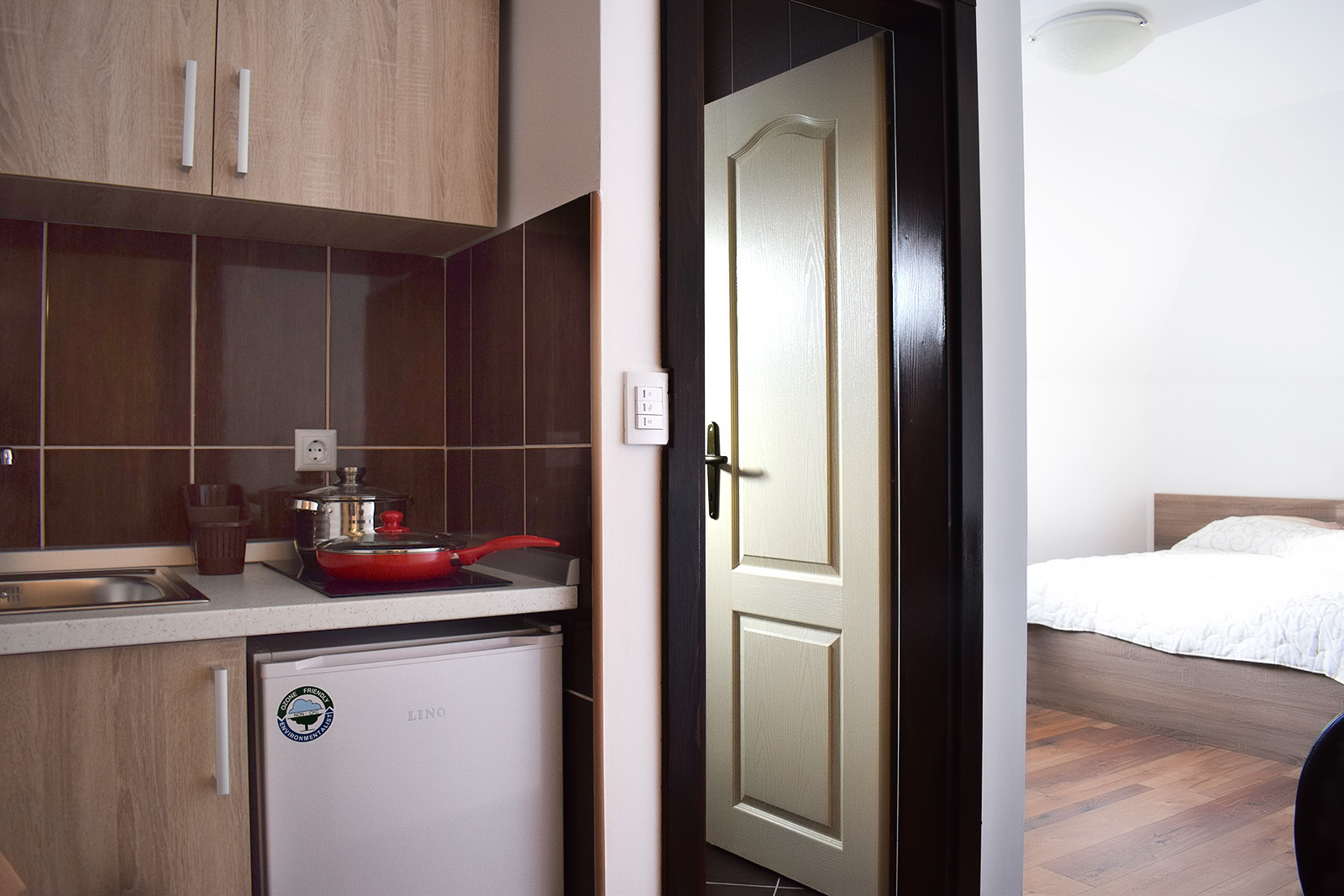 Studio 1 Studio br. 1 Studio br. 1 se sastoji od kuhinje, sobe i kupatila. Broj osoba: 2+1 Bračni krevet i fotelja na razvlačenje Površina: 19m² Komplet opremljena kuhinja sa ugradnom pločom i frižiderom LCD TV WiFi internet